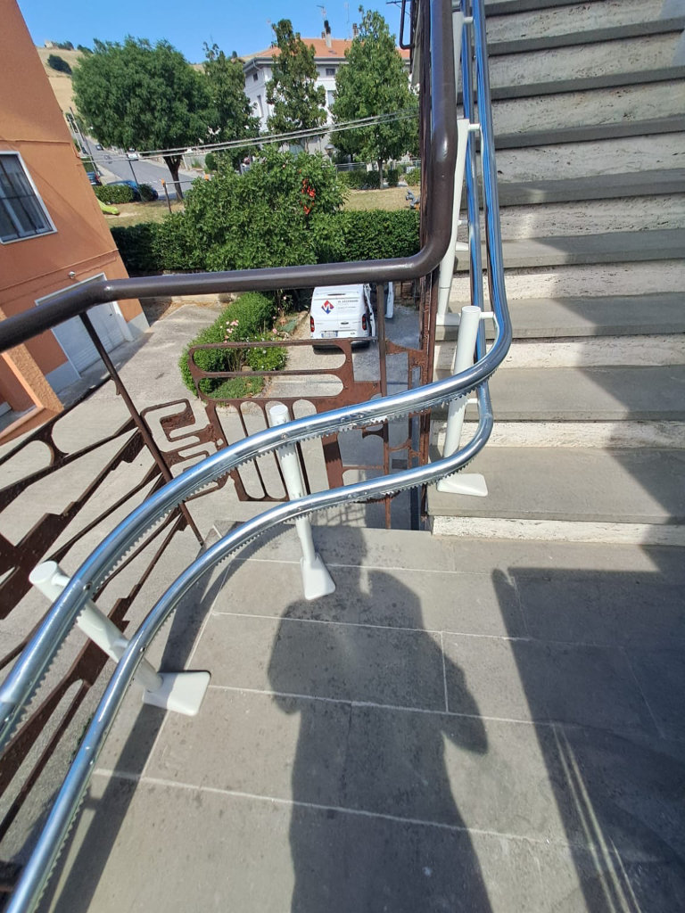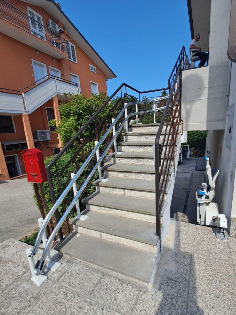 Il cliente necessitava di una soluzione per risolvere la mobilità su una scala esterna che rendeva difficoltoso l’accesso alla casa. Vuelle ha studiato un montascale che ha risolto i problemi del cliente.